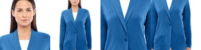 5 oz./yd² / 170 gsm, 58% cotton, 39% modal, 3% spandex jersey; Always flattering Perfect Fit™; Soft modal blend drapes without clinging; Shawl collar with one-button closure; Lower pockets; Princess seam for feminine look; Longer length for everyday activity and movement;