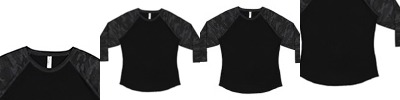 - Contrast color set-in collar and 3/4 raglan sleeve