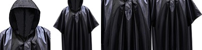 Durable water-repellent outer lightweight quiet fabric shell; Made of 210D nylon with waterproof 600mm DWR coating; Great reusable rain poncho; Two side buttons for additional adjustments; Poncho fits in outer printable shell, stuff pouch with carabineer; Flat measurements 51" W x 38" H; one size fits most; Suggested Imprint Size: 4"W x 6"H;