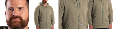 9 oz., 100% polyester fleece; 5 oz., thermal lining; Nylon front zipper; Reinforced bartacks at stress points; Double-layered three-piece hood; Double-needle stitched main seams; Oversized front pockets;