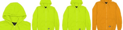 9 oz., 60% cotton/40% polyester fleece; 5 oz., thermal lining; Two-needle stitched main seams; Nylon front zipper; Double layered three-piece hood; Oversized front pockets; Knit cuffs and waistband; Reinforced bartacks at stress points;