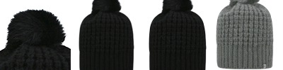 100% acrylic; One size fits most; Faux fur pom; Top of the World headwear is transitioning to J America Headwear; Mixed branding may occur for a period of time;