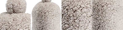 100% polyester Sherpa; Double-sided Sherpa; Sherpa pom; Stylish, slouchy fit; One size fits most;