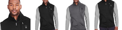 Mix of neoprene fabric and 100% polyester bonded knit with polyfill channels; Iconic Spyder bug logo on front left zipper chest pocket; Invisible seam front pockets; Modern fit;