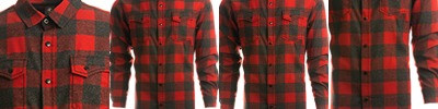 Red/Heather Black & Steel/White: 60% cotton, 40% polyester; Blue/Ecru & Black/Ecru: 80% cotton, 20% polyester; Single chest pocket with biased pattern ;