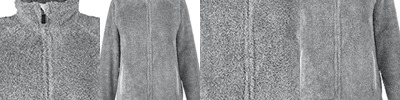 7.5 oz., 100% polyester multicolored shag; Unconcealed nylon zipper; Stand-up self-collar; Sideseam welt pockets; Single needle stitched throughout; Tear away label;