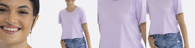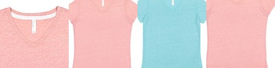 3.8 oz., 50% polyester/38% cotton/12% rayon tri-blend knit; Fits loose to body; Tear away label; Scoop neck; Dropped shoulder sleeves for mobility and comfort; Contoured bottom; Ladies' fit;