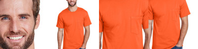 4.5 oz., 30 singles; Solid: 30% Ring Spun Cotton, 60% Recycled Polyester, 10% Rayon, 30 Singles; Light Steel: 90% Cotton, 10% Polyester, 20 Singles; All cotton content is 100% U.S. Grown; Safety Green is ANSI/ISEA 107-2020 certified as background material for high visibility safety apparel; 50-20 UPF rating, good protection; X-Temp adaptive finish and fresh IQ advanced odor protection technology; Shoulder-to-shoulder neck taping; Oversized pencil stitch pocket; Extra length in body and sleeves for coverage; Reinforced armhole stitching for durability; Lay-flat collar for shape retention and durability; Tear-away label; "A-" list status from CDP (Carbon Disclosure Project); Energy Star Partner of the Year (14 consecutive years); Every piece of Hanes apparel purchased from our company qualifies for Hanes4Education;