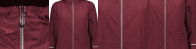 Shell: taffeta, 100% nylon; Lining: 65% polyester, 35% cotton; Water-resistant and repellant; Zipper front; Hand warmer pockets; Rib knit collar and back waist;