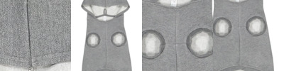 100% regenerated yarn. The yarn is composed of post-consumer waste, as well as scraps left over from the cutting stage of the garment manufacturing process. Because the yarn is repurposed, the material forgoes the dying stage, which reduces energy consumption by approximately 80%, water consumption by approximately 75%, and chemical consumption by approximately 90%.