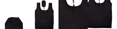 Reusable tote folds into pouch for storage in bags, glove compartments and pockets for shopping on the go