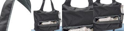 Note: Tote ships flat with matching pouch attached to loop via clip