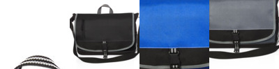 To close, fold top of bag (at black Nylon top seam) at least 3 times and snap buckles together
