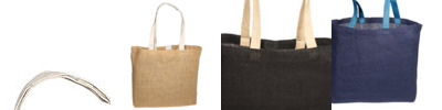 - Reusable tote bag made of Laminated Jute with 10 oz. Cotton Canvas piping.