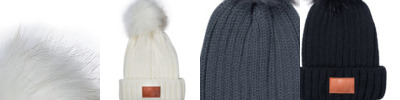 - Acrylic knit beanie with faux fur pom pom and PU patch on cuff for deboss