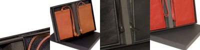 - Glazed bonded calfskin Leather portfolio accented with a faux suede spine