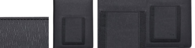 - Holds ID/business card behind acetate viewing window on back panel hidden by leather flap