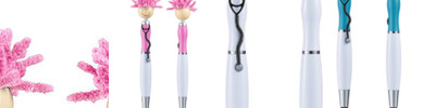 - Click-action ballpoint pen with smiley face, stethoscope-shaped clip and mop-top hair