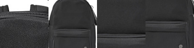 - Separate back zippered laptop pocket holds most 15" laptops