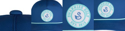 88% polyester, 12% spandex waterproofed; reload; 5-panel construction; Slightly curved bill with rope; Adjustable snapback closure; This unique Swannies design includes a Swannies rubberized logo patch on the front of the hat, not removable;