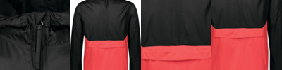 - Jacket folds up into zippered front pocket