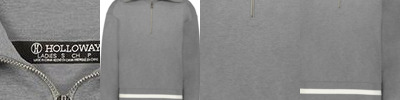 - Quarter-zip with wide fold-down collar